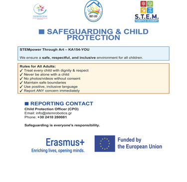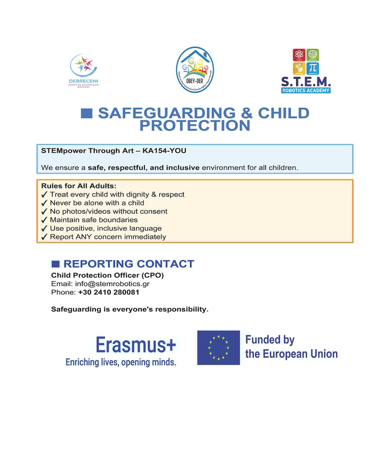 The STEMpower Through Art project is fully committed to ensuring the safety, dignity and wellbeing of all children and young people involved in its activities.